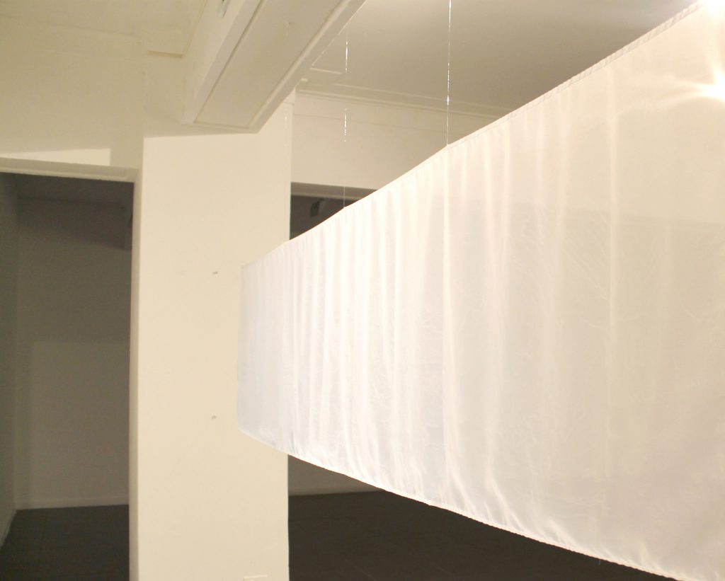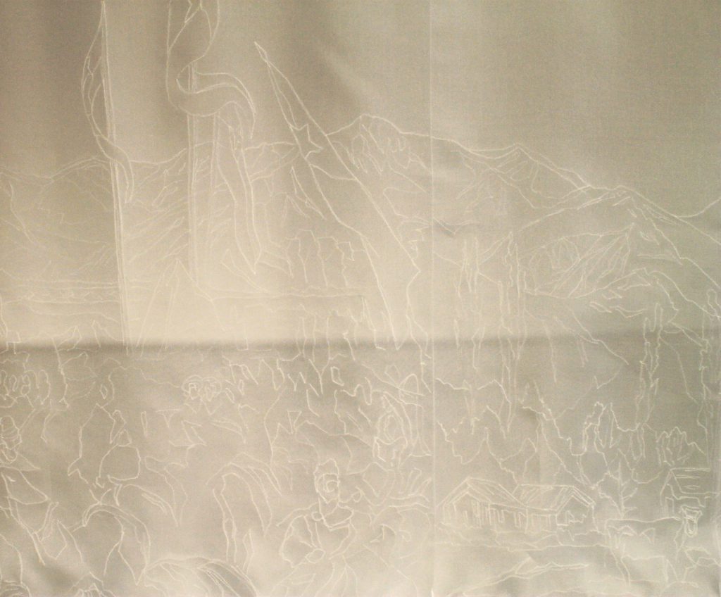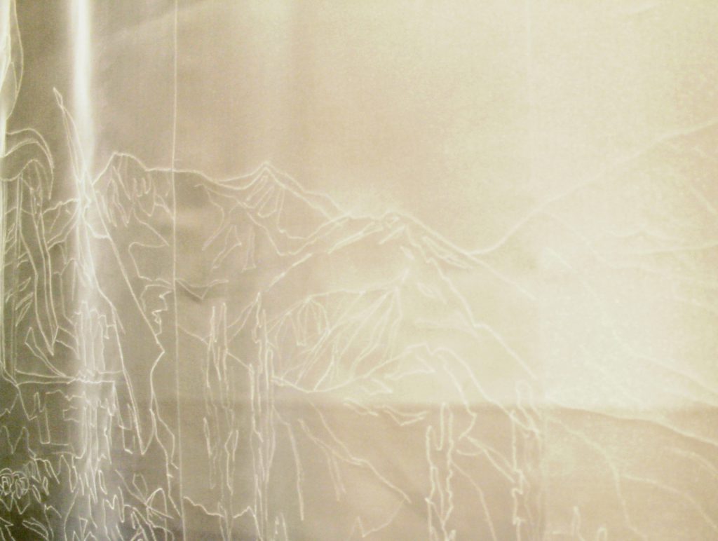 Consiste en una imagen casi invisible, casi virtual, producida manualmente con dos de los materiales más elementales de la tradición pictórica: tela y lápiz. Una tela semi-transparente y un lápiz blanco que apenas deja entrever la línea que traza. Se trata de la representación de una “panorámica de la pintura chilena” construida a partir de fragmentos de imágenes de pinturas extraídas desde la web, tan frágiles y poco visibles como la tradición de la pintura chilena misma.